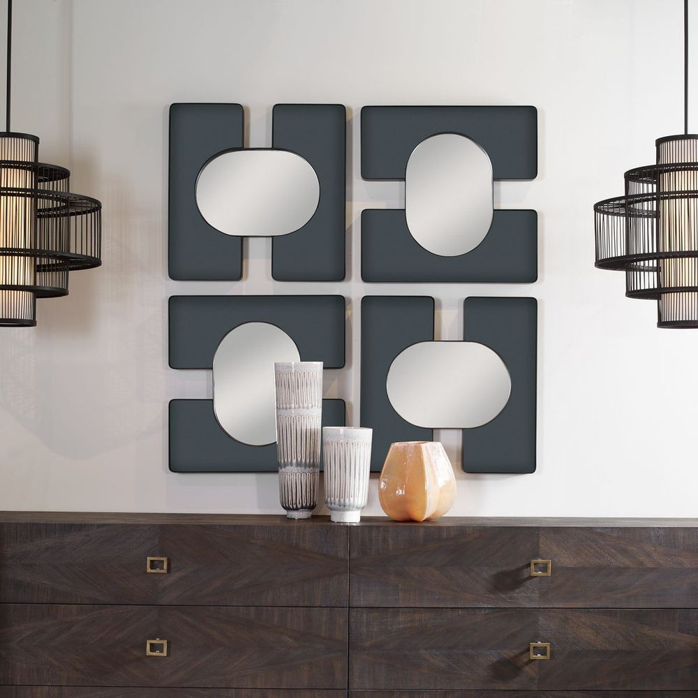 A beautiful and versatile mirror framed in smoke gray glass and steel, with a rich hand-applied satin black finish. The Embrace Mirror looks great hung as a single or in configurations. Multiple mirrors make a dramatic architectural art statement. May be hung horizontal or vertical. 24 W X 24 H X 2 D (in). This 24 x 24" Mirror is also available in White. If you have any questions, please Call our showroom in Houston for assistance, 832-717-0299. - Additional Information