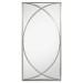 A paneled mirror frame with intersecting curves to form a central ellipse. Finished in pewter silver with one inch beveled modern mirror panels. 72"H X 36"W X 2"D
